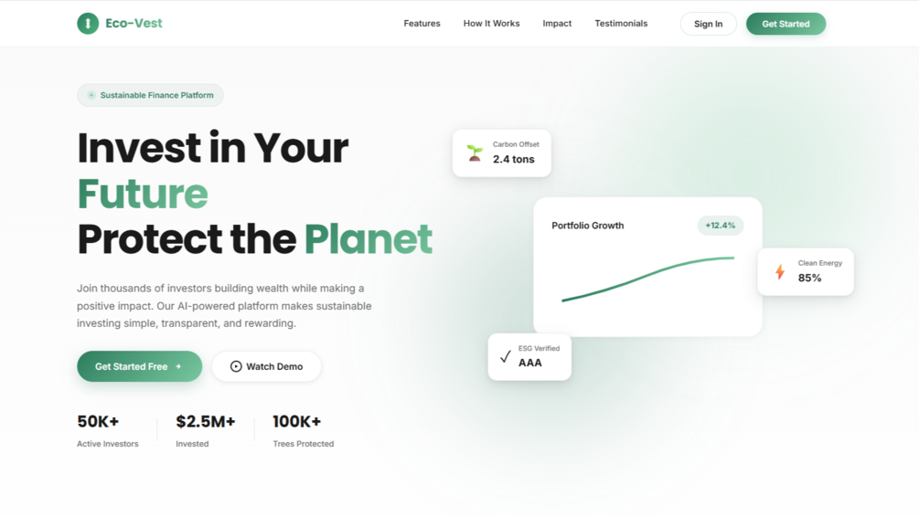 Tired of generic templates that fail to capture the trust and impact modern ESG investors demand? Eco-Vest delivers a premium, high-performance landing page purpose-built for sustainable finance and FinTech companies. Instantly communicate complex ethical value propositions through clean, trust-building design – convert conscious investors from millennials to professionals without dev time wasted.